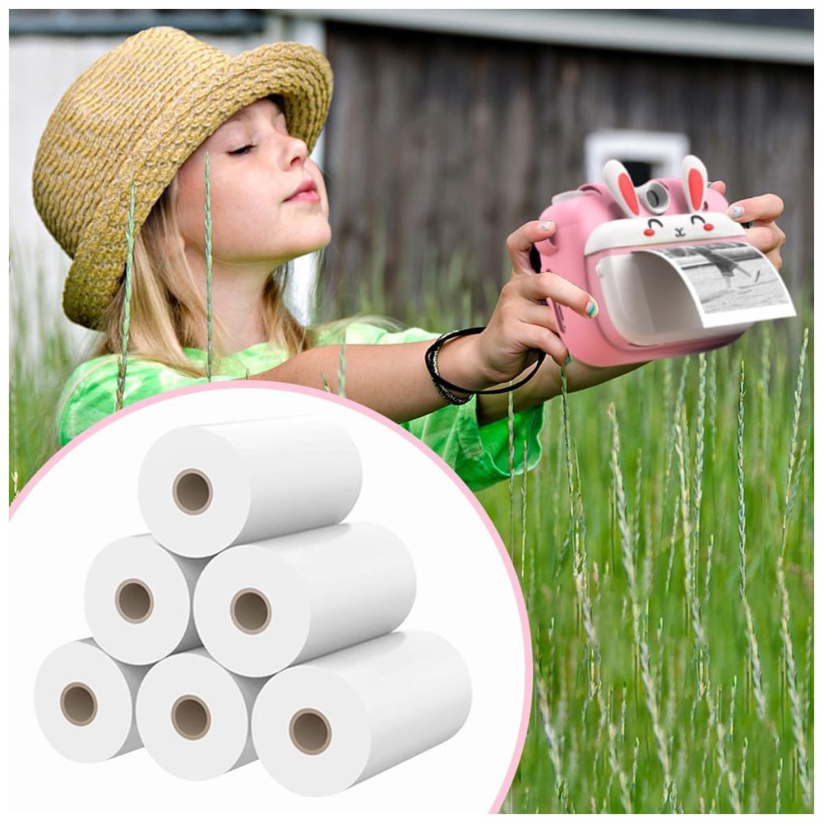 ¡Conoce a la Mini Impresora + Cámara de Conejito! Preserva tus recuerdos de manera instantánea con la mini impresora de fotos térmica inalámbrica de bolsillo. Su diseño compacto te permite llevar contigo la magia de imprimir fotos en cualquier momento y lugar.