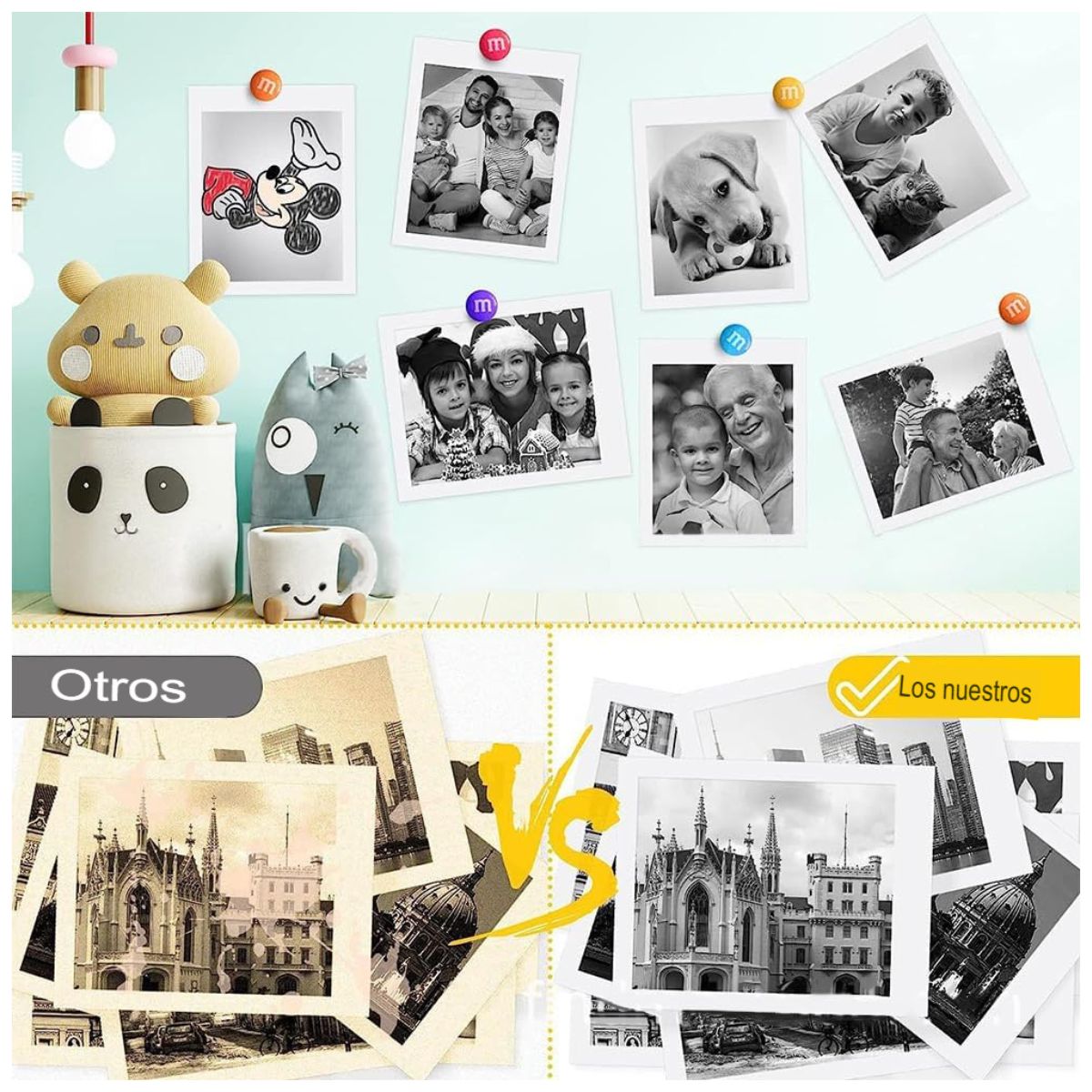 - Impresiones a tu mano: Con su diseño portátil, esta mini impresora cabe en tu bolsillo, permitiéndote imprimir recuerdos en el acto, ya sea en una fiesta, un viaje o una tarde con amigos.
